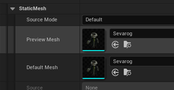 Sample Static Mesh ModuleのMeshにはSevarogを追加しました。