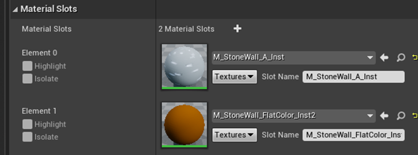 この辺まで丁寧に追及するにはこのMaterialの実装のCopyをどこかに作成して、このMaterialを使用したStatic Meshを作成し、Materialの実装を少しずつ変更して変化を確認する必要があります。
