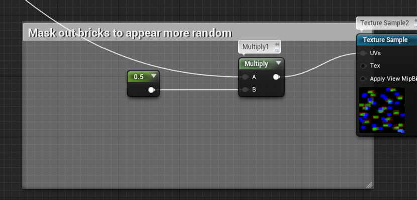なのでこのTexture SampleのUV値は先程のBrickとほぼ同じ値を代入する必要があるはずです。