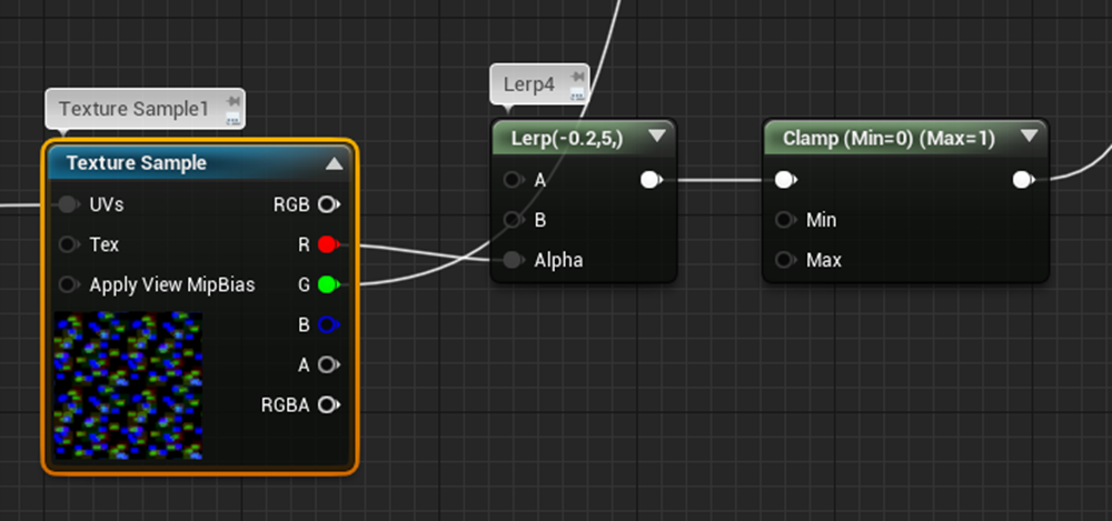 Texture Sample1のRの値にLerpしてClampしていました。
