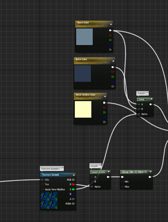 ここで一つ気が付いたんですが、Lerp3のAとLerp1のBが全く同じ色を使用しています。のでLerp3のBは実際は見えてないのかもしれません。