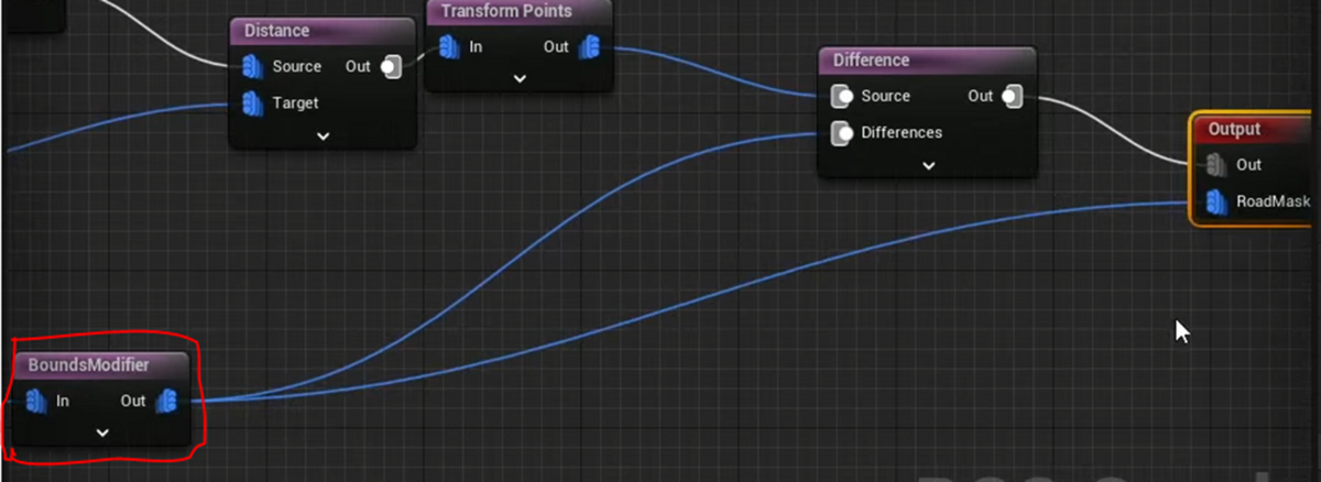 Bound ModifierノードのOutをOutputノードのRoadMaskに繋ぎます。