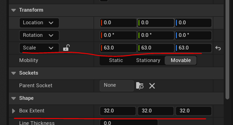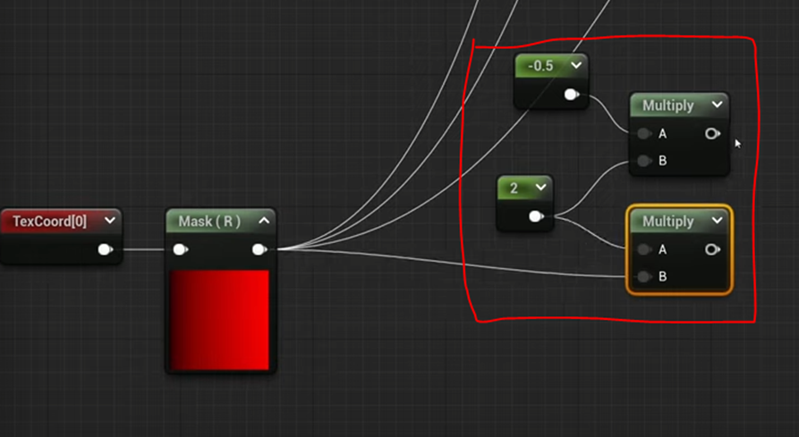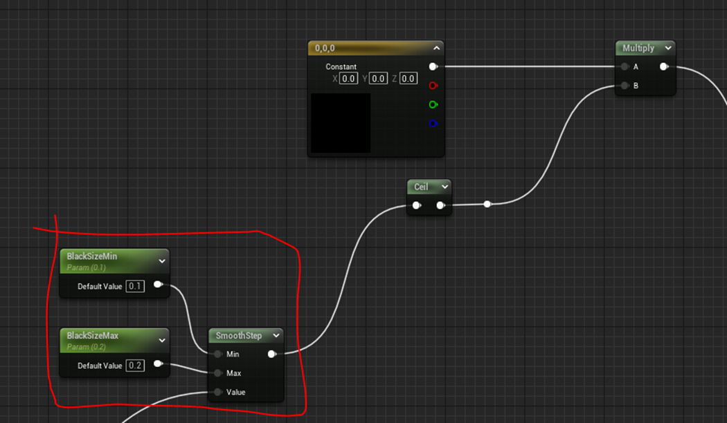 以下の赤線で囲った部分で黒い炎のサイズをMaterial Instanceから指定する事が出来るようにしました。