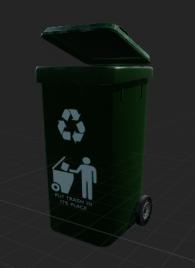 "Plastic Trash Bin" (https://skfb.ly/oyJJz) by 3Dev is licensed under Creative Commons Attribution (http://creativecommons.org/licenses/by/4.0/).