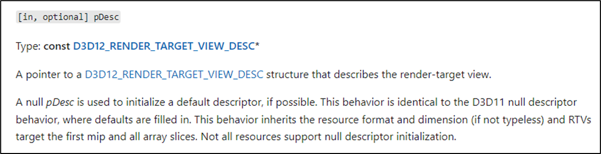 [14] Stevewhims. (2021, April 2). D3D12_RENDER_TARGET_VIEW_DESC (d3d12.h) - Win32 apps. Microsoft Learn. https://learn.microsoft.com/en-us/windows/win32/api/d3d12/ns-d3d12-d3d12_render_target_view_desc