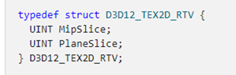 公式のD3D12_TEX2D_RTV structure [16]を見ると以下の2つの要素で構成されているStructです。