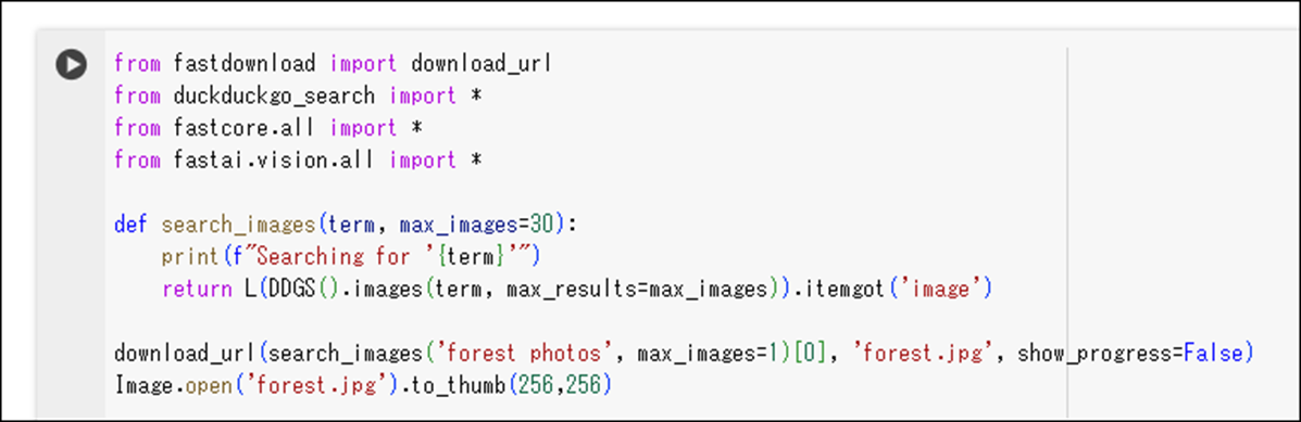 更に実際にddg_images()関数を使用している部分をDDG().images()関数に変更しました。