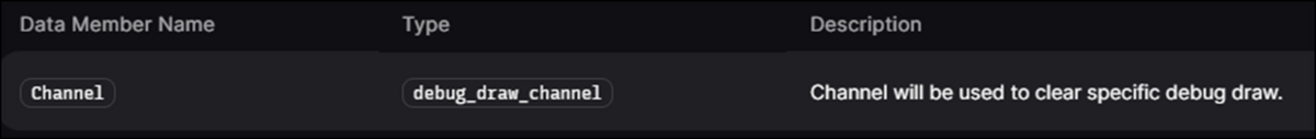 [11] debug_draw_channel class. (n.d.). Epic Dev. https://dev.epicgames.com/documentation/en-us/uefn/verse-api/unrealenginedotcom/temporary/diagnostics/debug_draw_channel?application_version=1.0